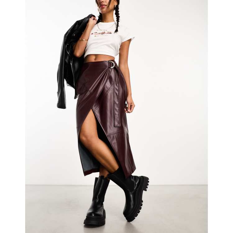 Burgundy leather clearance skirt asos