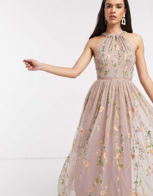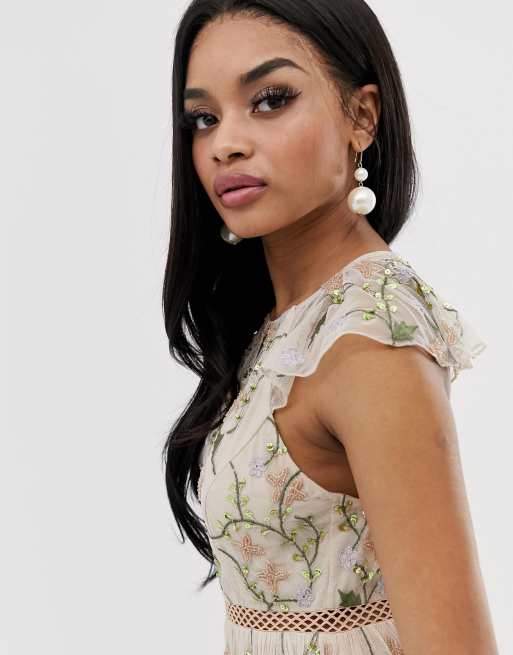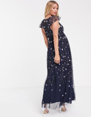 Asos design maternity pretty embroidered floral and sequin mesh maxi clearance dress